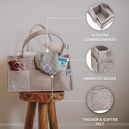 • QUALITY AND SATISFACTION GUARANTEE: Crafted from soft felt, our diaper caddy is built to last. The high-quality materials ensure durability and easy maintenance. We stand behind the product with a satisfaction guarantee, making your purchase risk-free. Elevate your diaper organization with the Parker Baby Diaper Caddy – the ultimate diaper bag essential and nursery organizer.